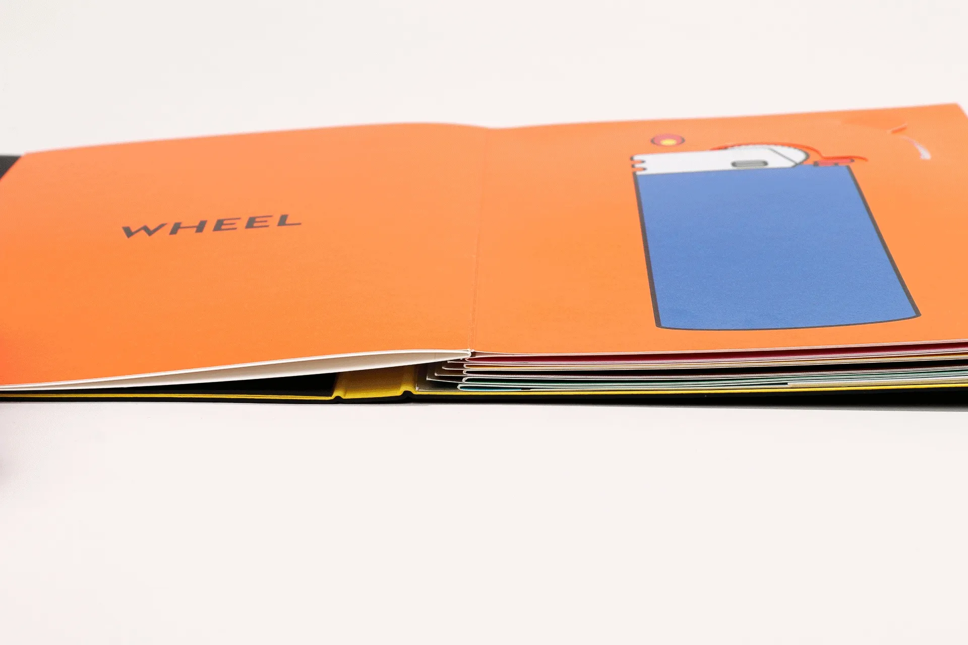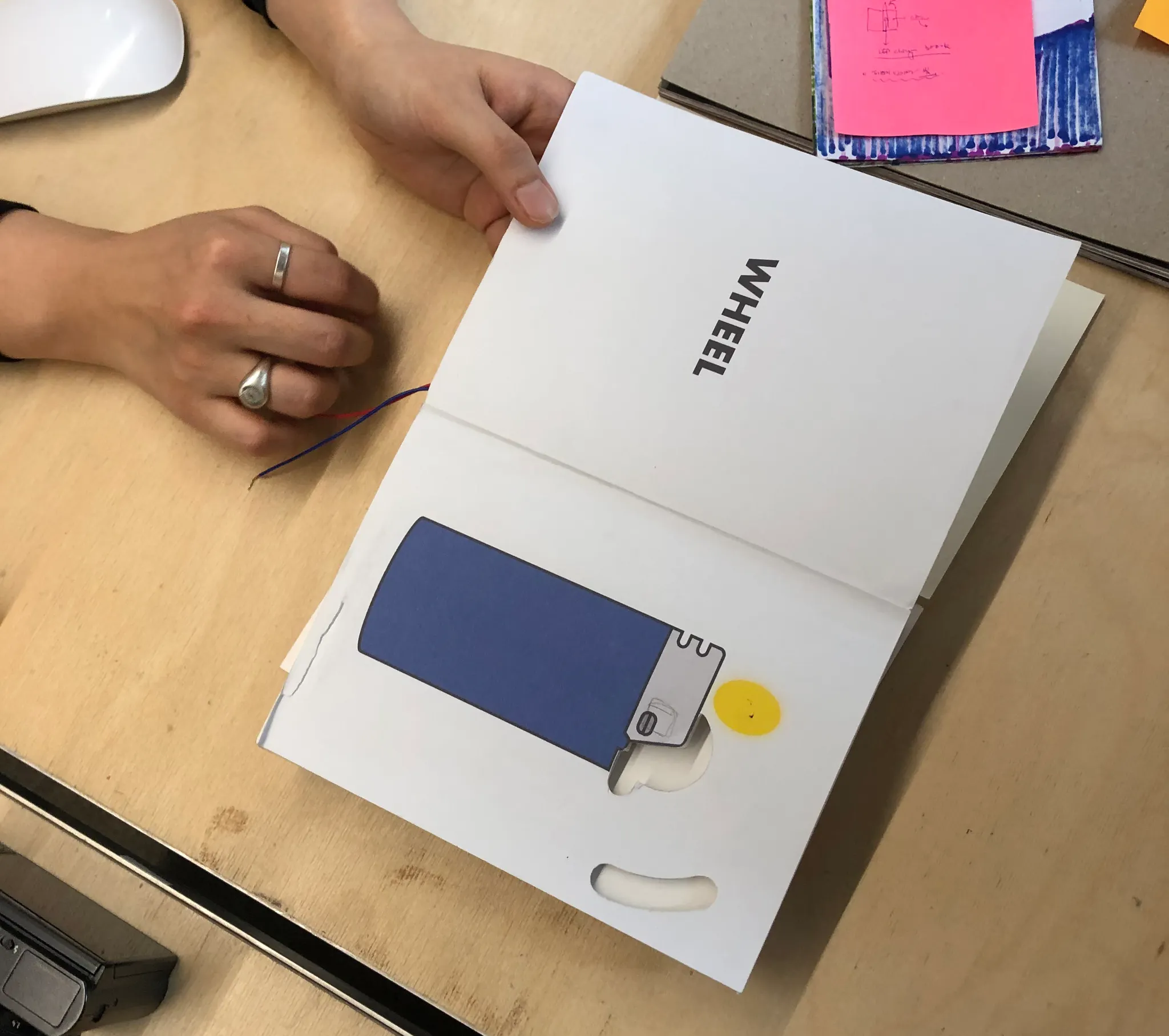 일단 상황이 명확했어요. 전기가 흐르는 길이 짧아져야 하고, 책의 두께와 비용에 영향을 끼치니 배터리는 무조건 하나만 삽입되어야 하고, 여섯 페이지 모두에 전원이 공급되어야 하는 등의 기준이 있었어요. 많은 경우의 수를 시뮬레이션하다가 첫 페이지에 배터리를 부착하고 다음 페이지에 닿을 때마다 전원이 공급되는 방식을 시도해보았죠. 최종적으로 책을 넘길 때 닿는 면을 통해 전류가 흐르도록 하는 계단식 제본방식을 개발했습니다. 이 방법을 찾고 팀원 모두 너무 기뻤어요. 이제 만들기만 하면 되니까! 그래서 특허까지 진행 중입니다.