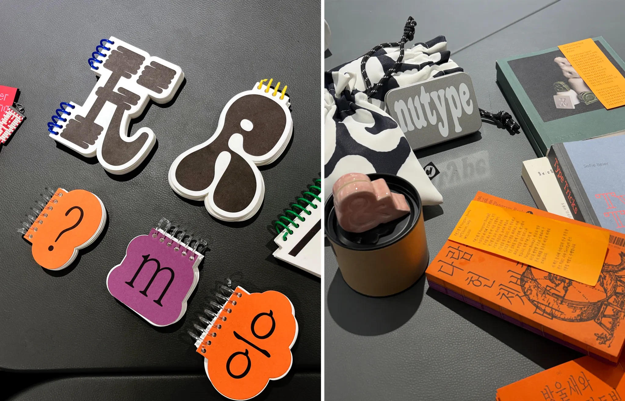 이러한 관점으로 스튜디오 어택에 참여해 누타입의 세 디자이너(김슬기, 김진희, 이수현)의 이야기를 듣다 보니 자연스럽게 작업들이 조금씩 다른 시선으로 보이기 시작했다. 프로젝트 결과물보다 어떤 질문에서 출발했고 어떤 태도로 만들어졌는지가 더 중요하게 다가왔다. 그중에서도 인상 깊었던 프로젝트는 «오브제타입(Objet Type)»과 NU 콜로코 패밀리 폰트였다. 학부 시절 도자예술학과에 재학하다가 시각디자인으로 전공을 바꾼 나의 경험과 맞닿아 있기 때문이다. 오브제타입은 누타입과 세라믹 스튜디오 슬로렌스가 협업해 디지털 환경을 넘어 도자와의 접목을 통해 폰트를 손으로 감각하고 경험할 수 있도록 한 재미있는 프로젝트다.