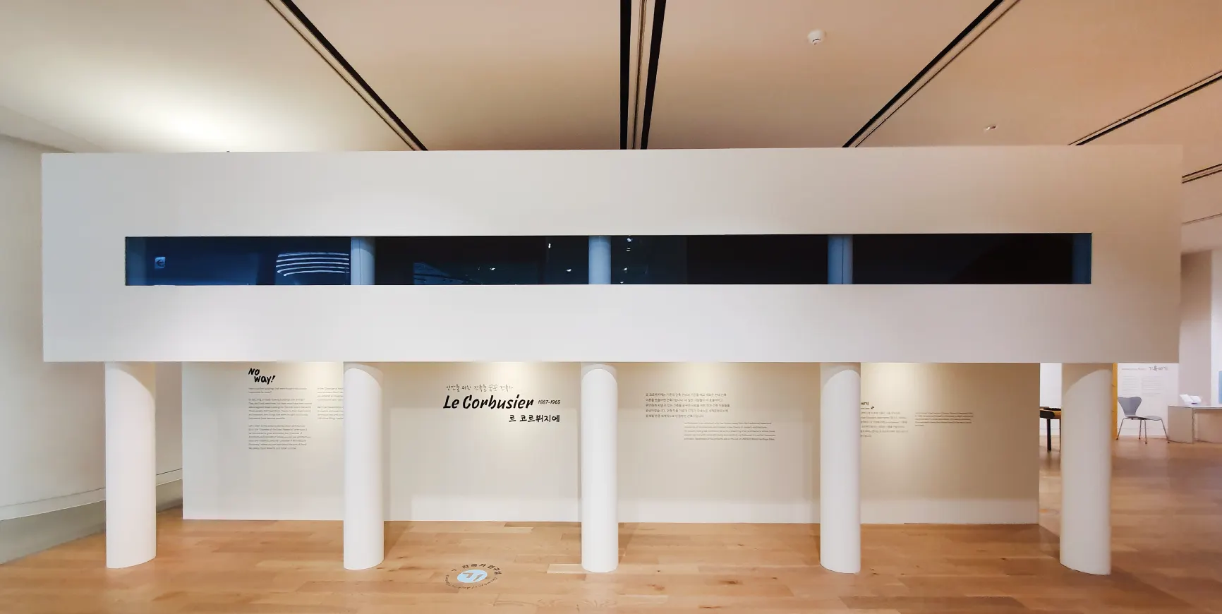 《말도 안돼! No Way!》 전시 중, 르 코르뷔지에의 건축법을 설명하기 위한 전시 구조물.