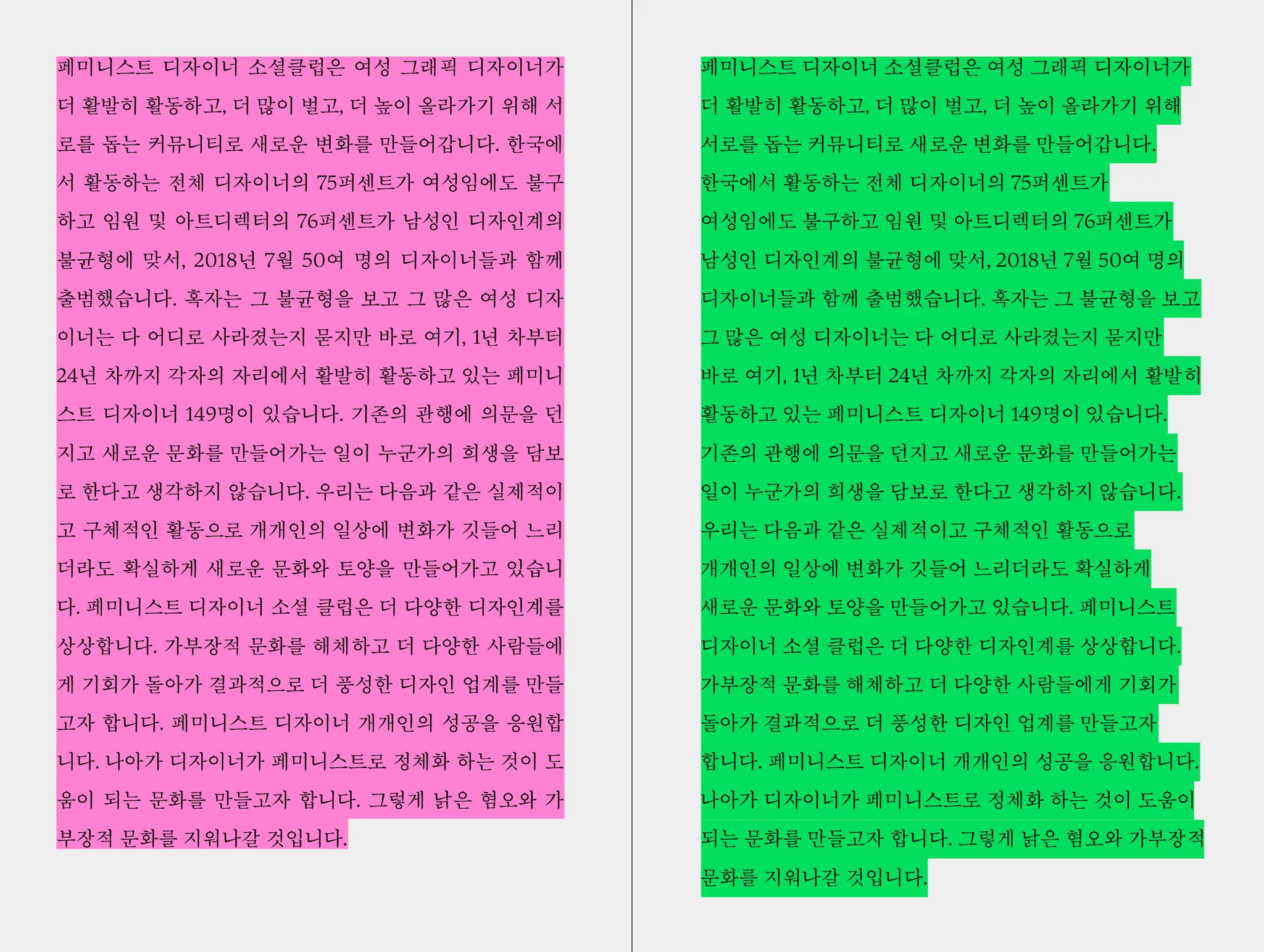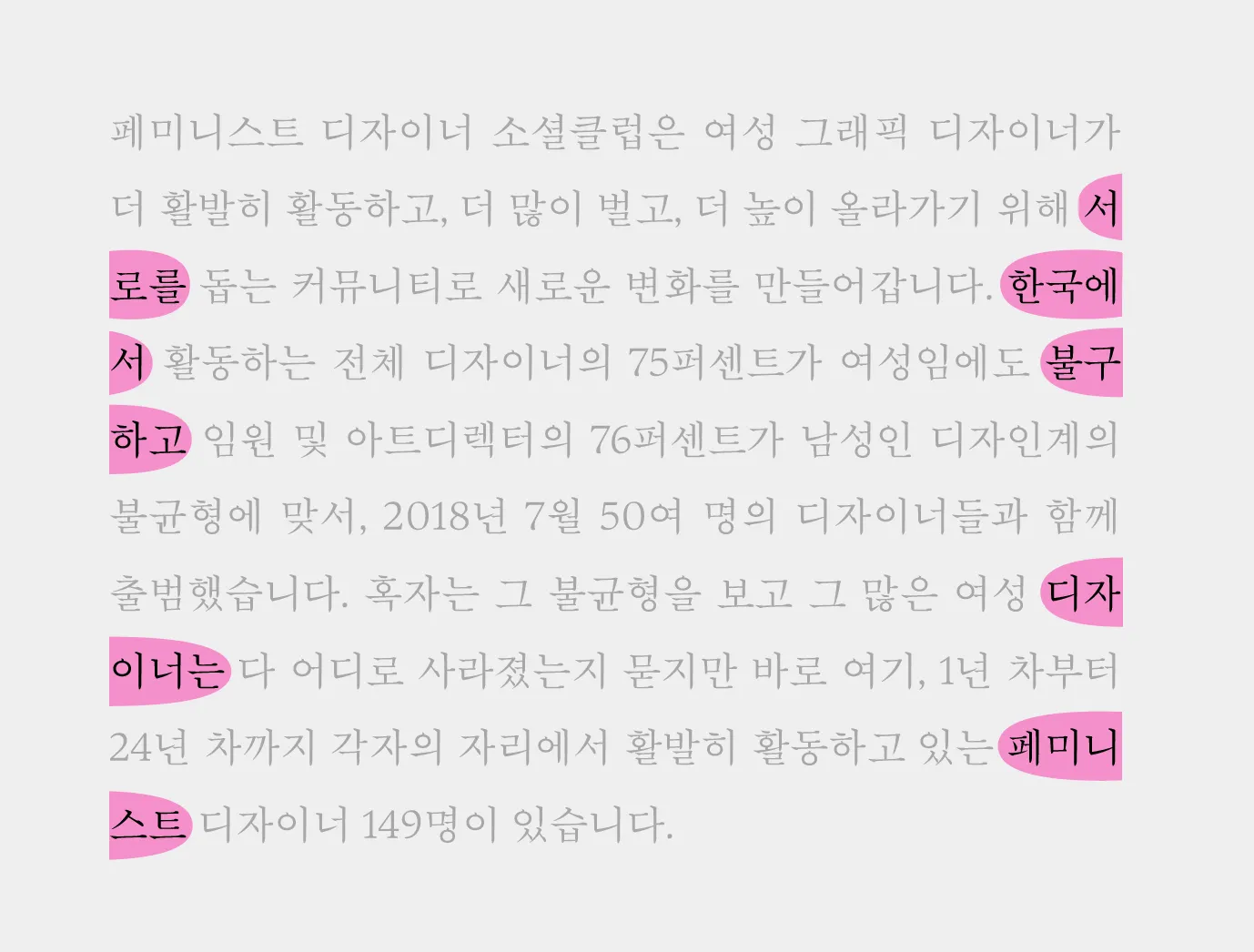 1인 스튜디오 ‘O–O–H’와 페미니즘 출판사 ‘봄알람’에서 디자인하고 운영한다.