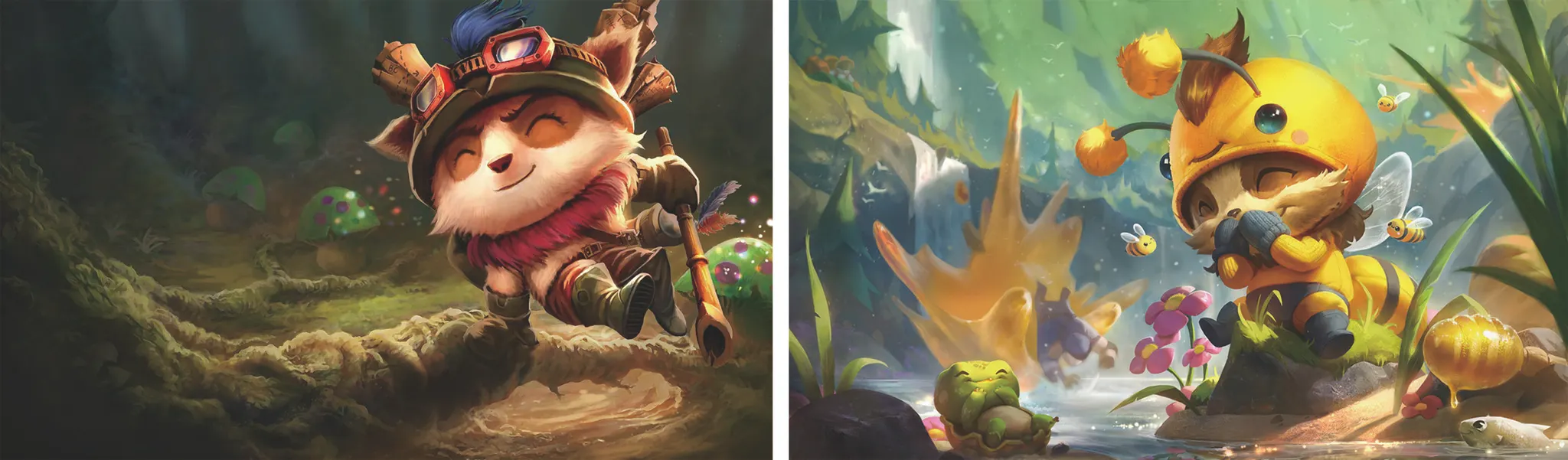 게임 ‘리그 오브 레전드’의 캐릭터 ‘티모’(왼쪽)과 ‘꿀잼 티모’(오른쪽).