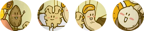 이쯤 되면 허니버터 앤 프렌즈에서 ‘프렌즈’는 다양한 외양과 성격을 부여받은 캐릭터 친구들이 아닌 제품의 맛, 그러니까 양념의 원재료를 뜻하는 것이 아닐까 하는 생각에까지 도달하게 된다. 아몬드에 양념을 입히는 제품의 특징이 비주얼적으로는 게임 캐릭터(변하지 않는 원재료)의 스킨이나 코스튬 시스템(기획 의도와 컨셉에 맞는 특성, 양념의 시각적 표현)에 가깝게 표현되는 것이다.