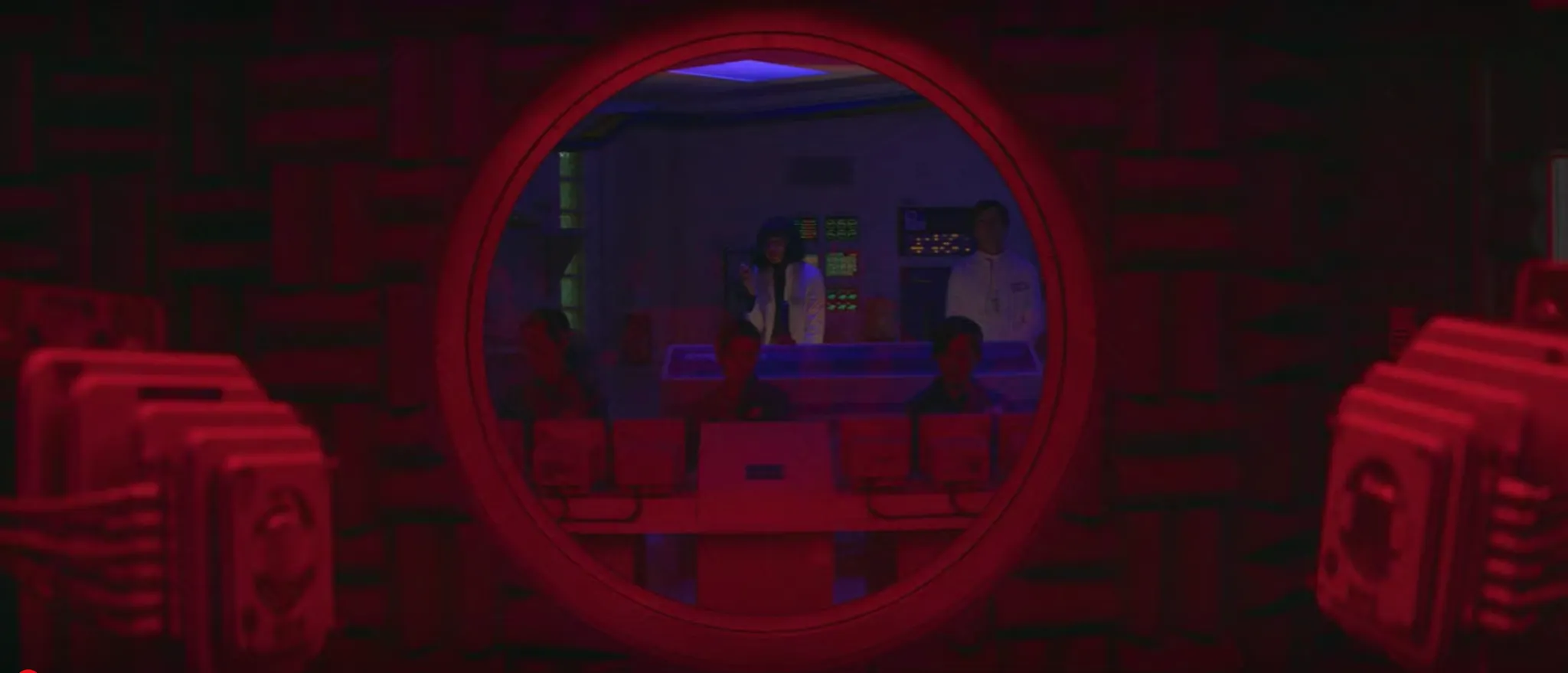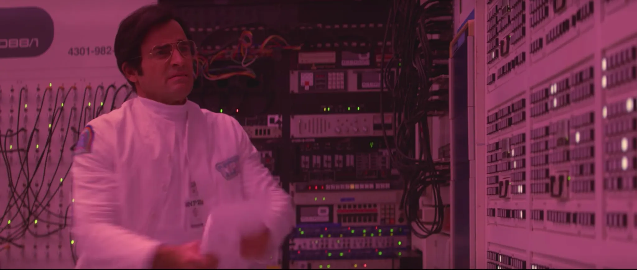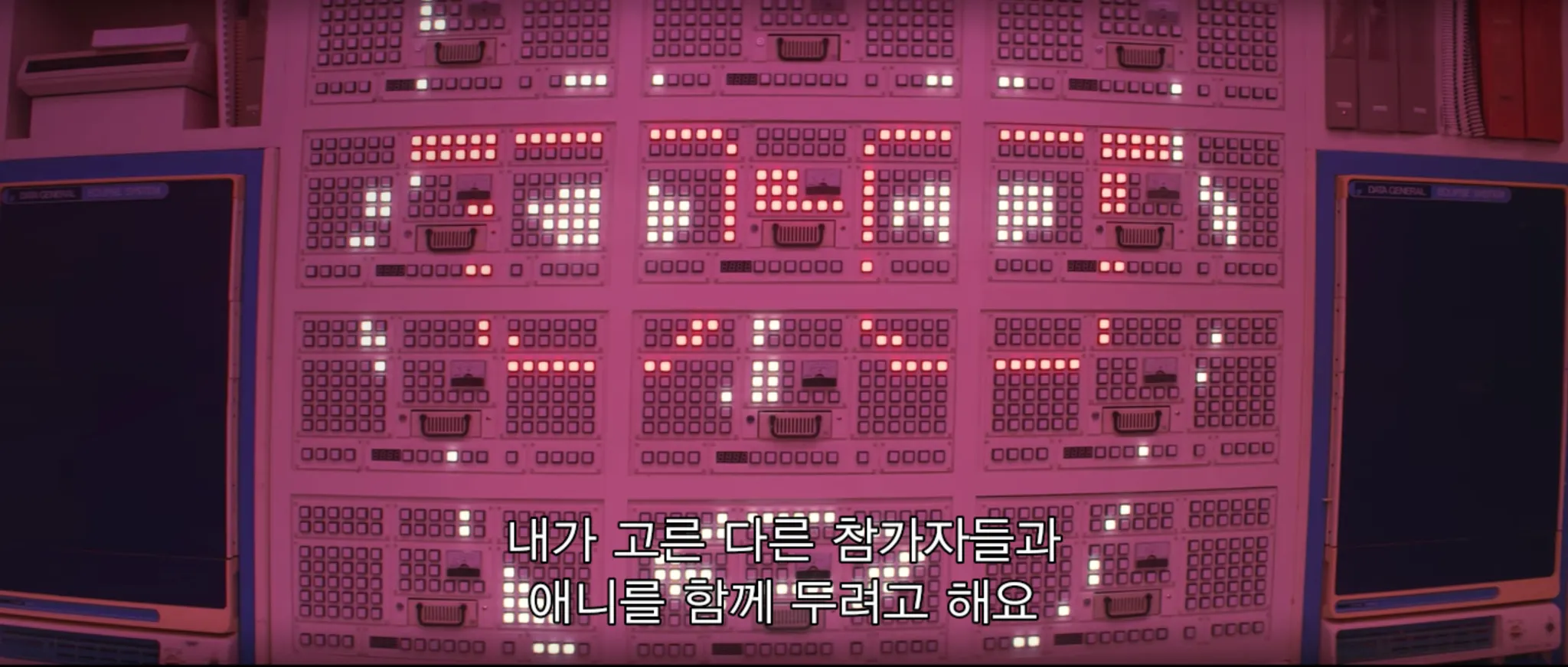 <매니악>은 여러모로 독특한 드라마다. 우선 어느 시대를 배경으로 하고 있는지 콕 집어 말하기 힘들다. 엄청나게 기술이 발전된 미래 같아 보이기도 하면서 드라마의 주요 공간인 ‘실험실’이 풍기는 레트로한 색감 때문에 과거의 느낌도 든다. 실험실은 채도 높은 분홍, 초록 계열의 강한 네온 색상으로 차있다. 네온 빛깔들은 실험실 벽을 꽉 채운 거대한 컴퓨터나 실험기계들이 가진 메탈 텍스쳐와 부딪히며 더욱 독특한 분위기를 자아낸다. 주요 배경이 가진 높은 채도에 비해 드라마를 차지하고 있는 정서는 굉장히 우울하고 정적이라는 점은 재밌는 대비이다.