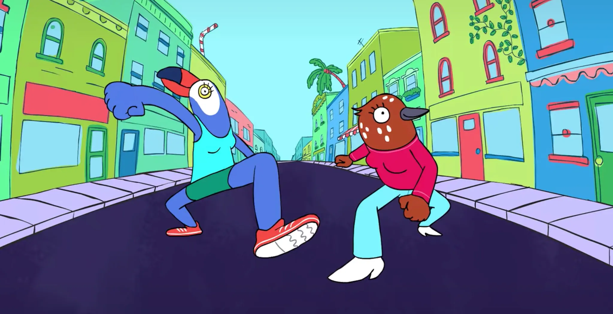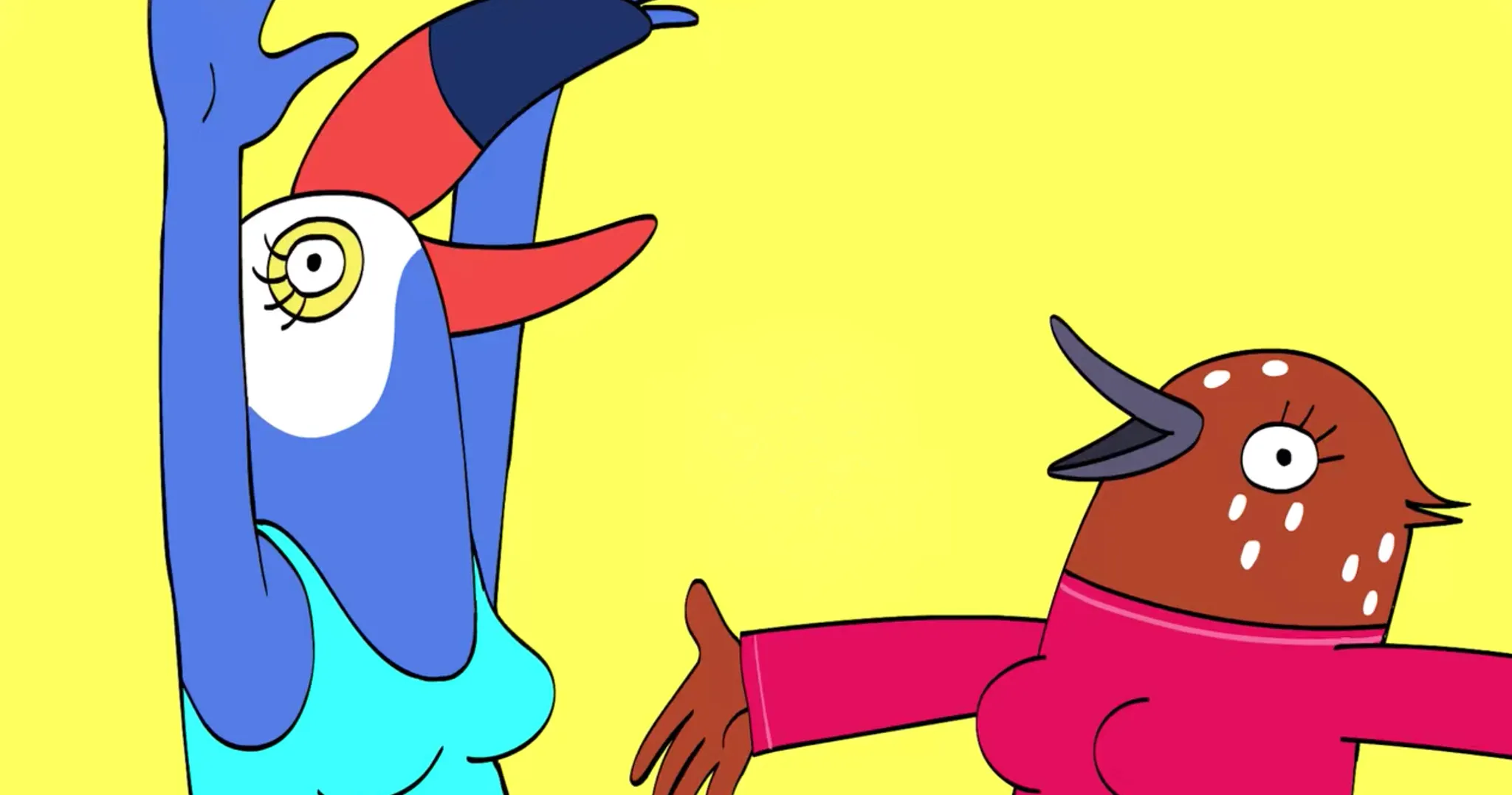 <투카 앤 버티>는 애니메이션 자체의 퀄리티가 매우 높아 디자이너+여자인 친구가 "요새 넷플릭스에서 볼 게 없다." 고 하면 만만하게 추천한다. 새의 머리를 하긴 했는데 여성이라 해야 할지 암컷이라 해야할지(?) 물음표가 뜨는 주인공들을 보고 있으면 '상상력이 뛰어나다.'라는 말은 이럴 때 하는 거구나, 싶다. 한 에피소드당 20분가량으로 짧아서 저녁 먹으며 가볍게 한 편 볼 수 있다. 하지만 짧은 길이 안에 담고 있는 메시지는 가볍지만은 않은 블랙 코미디다.