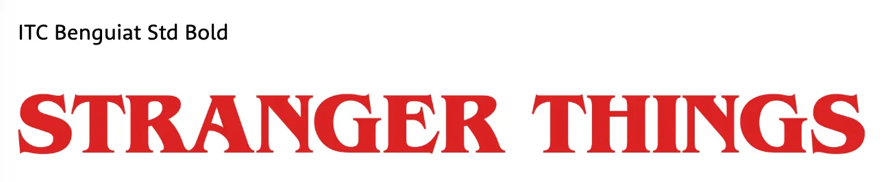 이 로고타입은 ‘ITC Benguiat’이란 서체로 디자인되었다. ITC Benguiat은 미국의 타이포그래퍼 ‘Ed Benguiat’이 디자인한 서체이다. ITC Benguiat은 'Stranger Things 폰트' 로도 유명하지만, 사실 그동안 유구하게 여러 예술 작품에서 즐겨 쓰인 서체이다. 특히 공포 영화나 추리 소설 같은 장르에서 사랑받았다.
