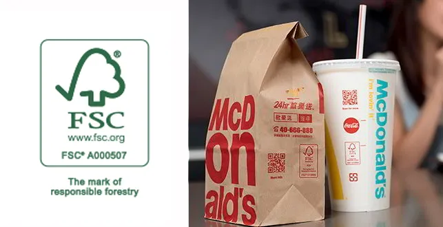 (좌)FSC 인증 마크 (우)맥도날드 포장지에서도 FSC 인증 마크를 발견할 수 있다.