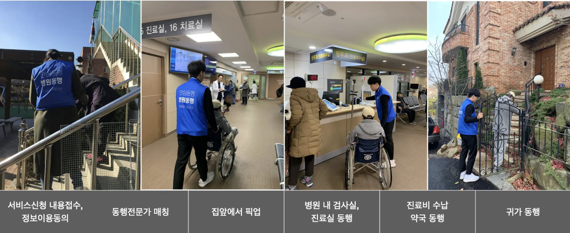 시니어 헬스케어 스타트업으로 여러 군데 소개하러 다니던 중 송파 사회적경제센터와 인연으로 소셜벤처의 행보를 시작할 수 있었다. 10년 경력의 베테랑 사회복지사 선생님과 병원 동행 서비스를 론칭하게 된 것도 이때였다. 시장조사과정에서 요양 시설을 방문하면 시설 내 어르신들이 평소 10알이 넘는 의약품을 처방받아 드셨고, 장기 복용이 될수록 알 수 없는 부작용에 시달리기도 했다. 관리가 잘 안 되면 시설에 입소해있어도 응급 차량을 타고 응급실에 가는 일도 잦았다. 병원 동행 서비스를 통해 좀 더 일찍 의료접근성을 해결한다면, 조기에 병을 진단하고 관리해서 삶의 질이 나빠지는 것을 예방할 수 있을 것이었다.