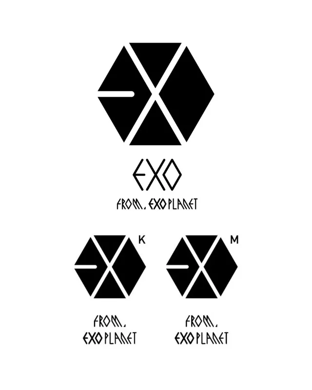 육각형의 형태는 그 당시 한 유닛 그룹당 여섯 명 씩인 멤버 수와 외계 행성이라는 컨셉에서 착안했다. 그러나 그보다 즉각적으로 눈에 띄는 것은 로고 속에 들어간 EXO라는 글자와 특이한 타이포다. 어릴 적 본 외계인이 등장하는 영화에서 그들이 꼭 이런 글자를 썼던 것만 같다. 이 모든 시각적 요소가 그룹 EXO의 컨셉을 직접 알 수 있도록 한다.