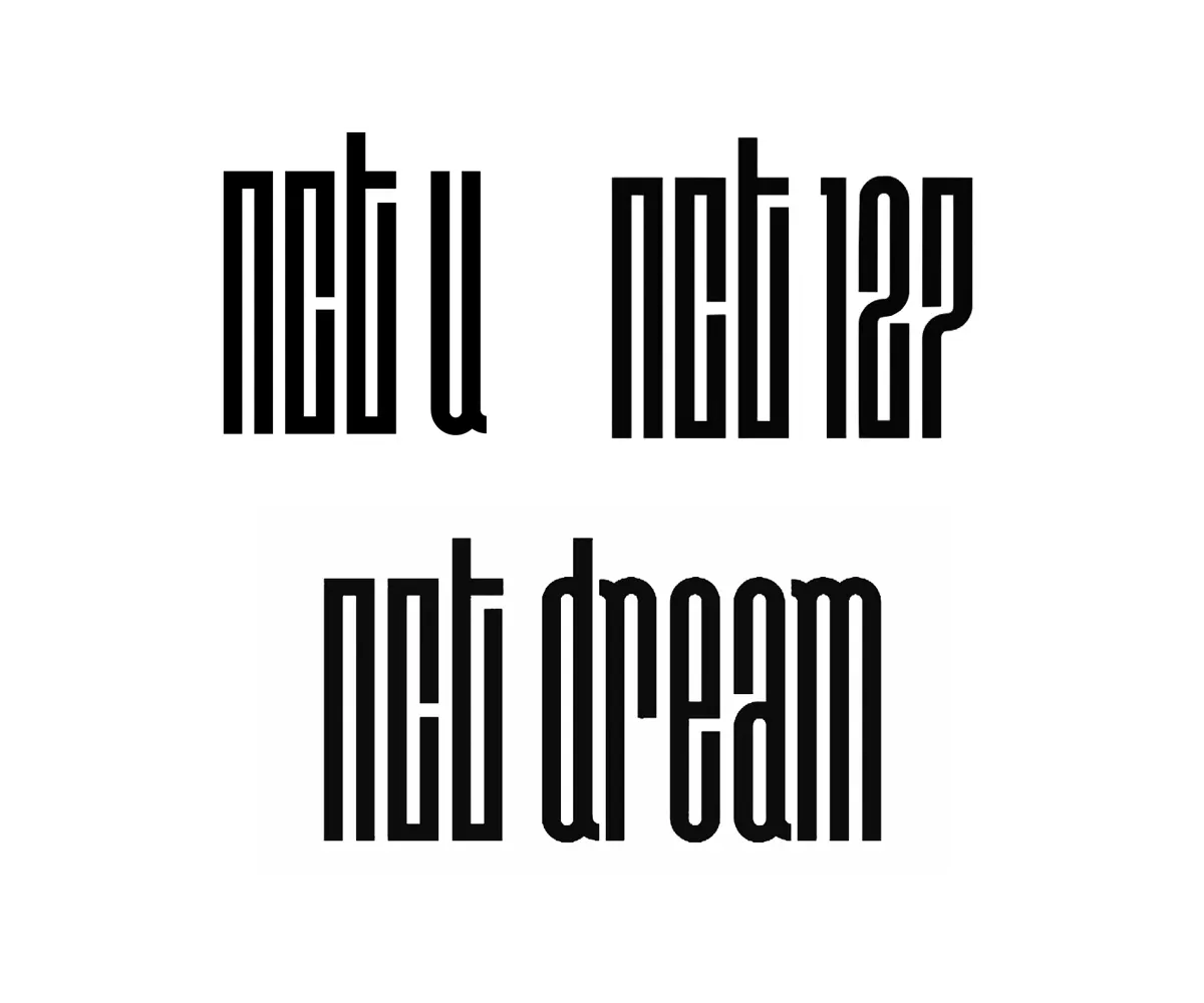 그룹의 형태와 맞물려 로고가 확장되기도 한다. SM 엔터테인먼트의 남자 아이돌 그룹 NCT는 전체를 아우르는 그룹에서 서브그룹 - NCT U, NCT 127, NCT DREAM - 으로 나뉘는 형태이다. 기본 형태 뒤에 서브그룹의 이름을 붙여 로고를 만들었다.